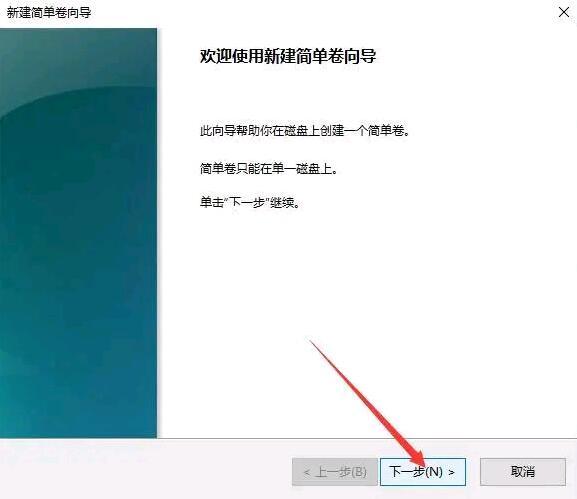 7.进入新建简单卷向导,直接点击这里的“下一步”,如图。