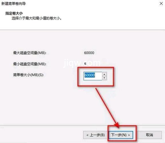 8.指定卷的大小,您可以输入想要的大小。然后点击“下一步”。