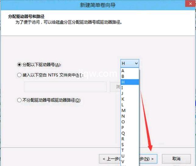 9.对于新创建的简单卷,请选择驱动器号。