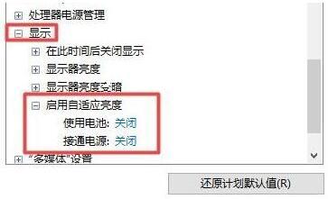 第五步,在显示选项下,将“ 启用自适应亮度 ”选项“ 关闭 ”就可以了。