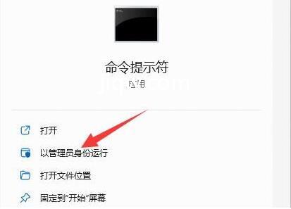 7、然后选择“ 以管理员身份运行 ”命令提示符。