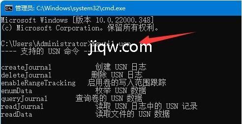 回车以查看usn命令。