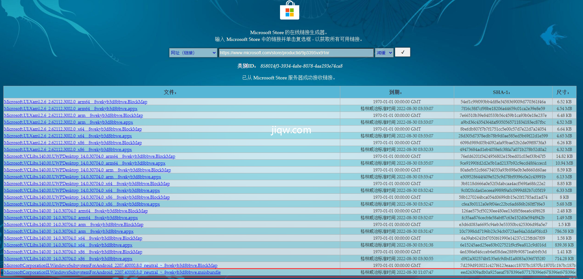 【最下方】找到 MicrosoftCorporationII.WindowsSubsystemForAndroid_2207.40000.8.0….msixbundle 开始下载,文件大小 1.34GB。