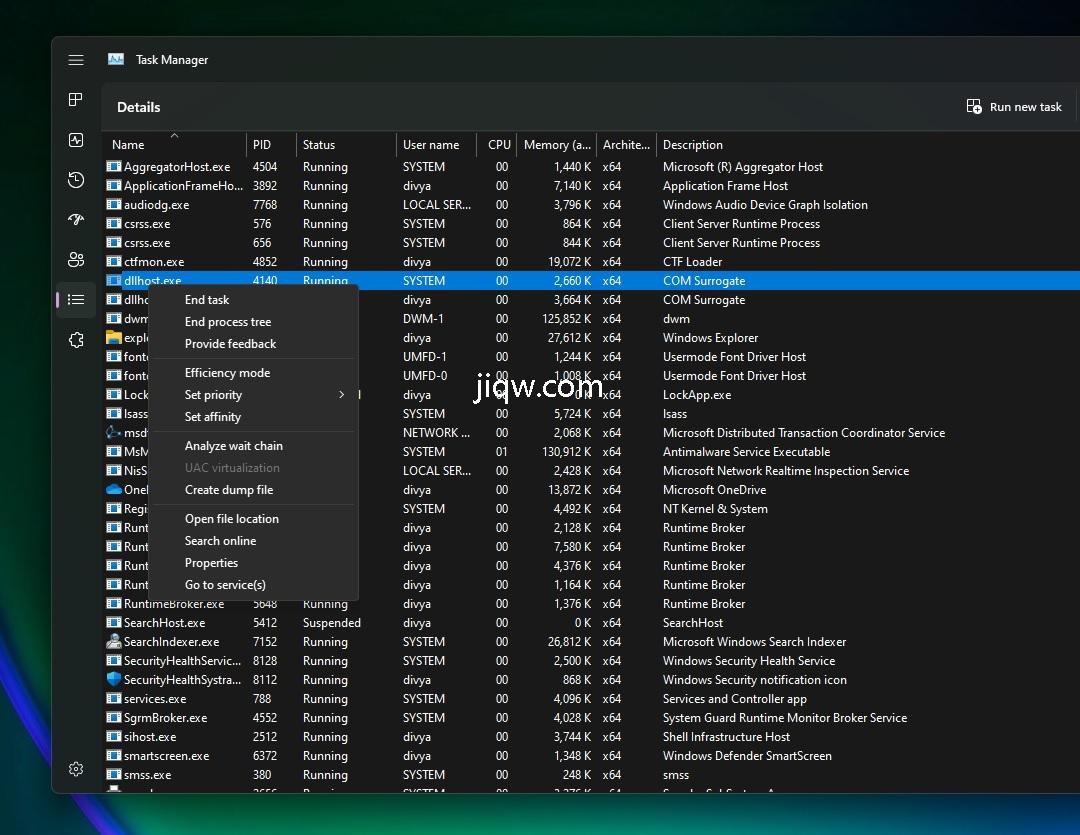 从下一个功能更新开始,您将能够使用任务管理器生成故障转储,如下面的屏幕截图所示。此功能特别有用,因为它可以让您轻松解决多个问题,因为崩溃转储包括崩溃时的系统内存记录。
