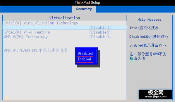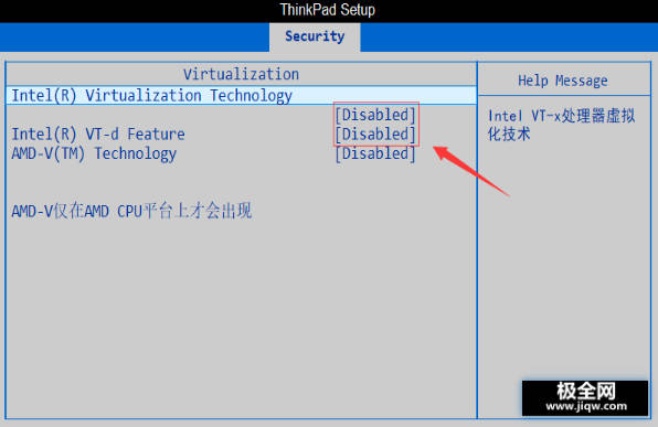 4.发现 Virtualization 两项虚拟功能开关均处于 Disablde 状态,及关闭状态,