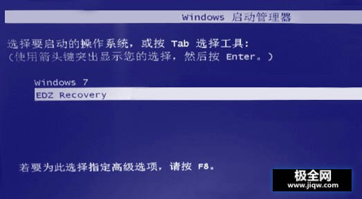 一键还原功能在系统启动时,连续敲击键盘上下键,会出现【EDZ Recovery】选项,若要执行还原,请手动按键盘上的向下键选择【EDZ Recovery】菜单;