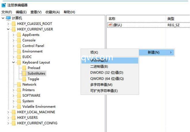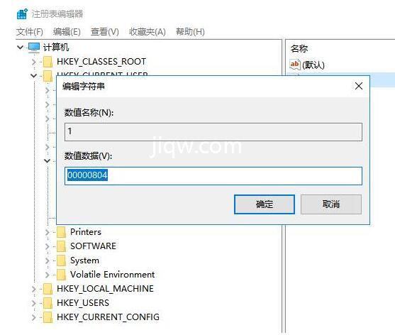 HKEY_CURRENT_USER\Keyboard Layout\Preload,改动“1”的键值为“00000804”。