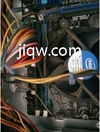 2、把主机两侧的大铁片拿到一边,找到插槽,有的主板的插槽的颜色不同,这时我们找到插槽前后两边有一个小扣子这个就是插内存条的地方。