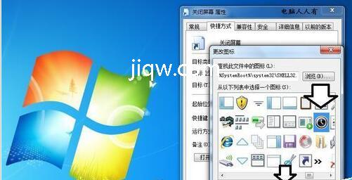 5、此时会在桌面生成一个关闭屏幕的快捷方式图标(默认系统图标,比较难看)→右键点击该图标→属性→更改图标。