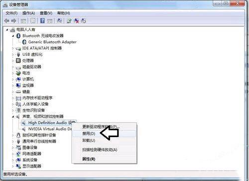 8、定位到:声音、视频和游戏控制器→右键点击声卡设备→禁用(然后再启用即可还原声音设置的默认值,很多异常问题可以迎刃而解)。