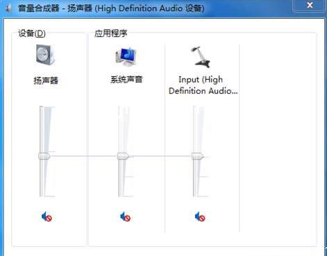 5、此时,扬声器声音竟然是静音状态(系统一部分功能有声音),再点击合成器查看究竟。