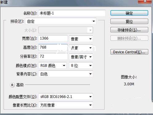 屏幕大小的尺寸单位是像素,新建时后面的单位也是像素,而不是厘米。