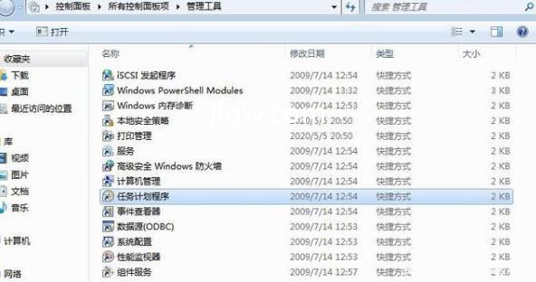 在控制面板中依次点击 “管理工具”--“任务计划程序”,进入任务计划库。