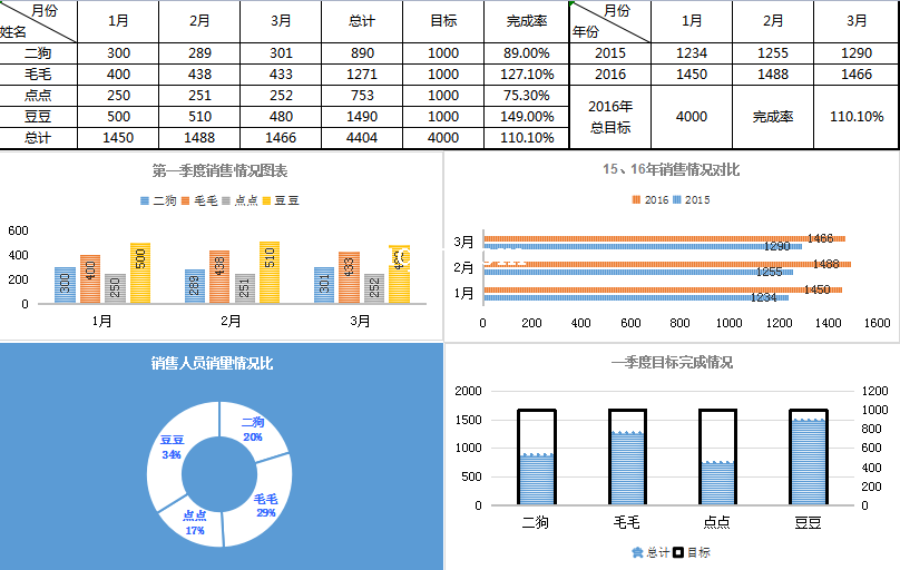 季度销量情况同比分析-表格-极全网