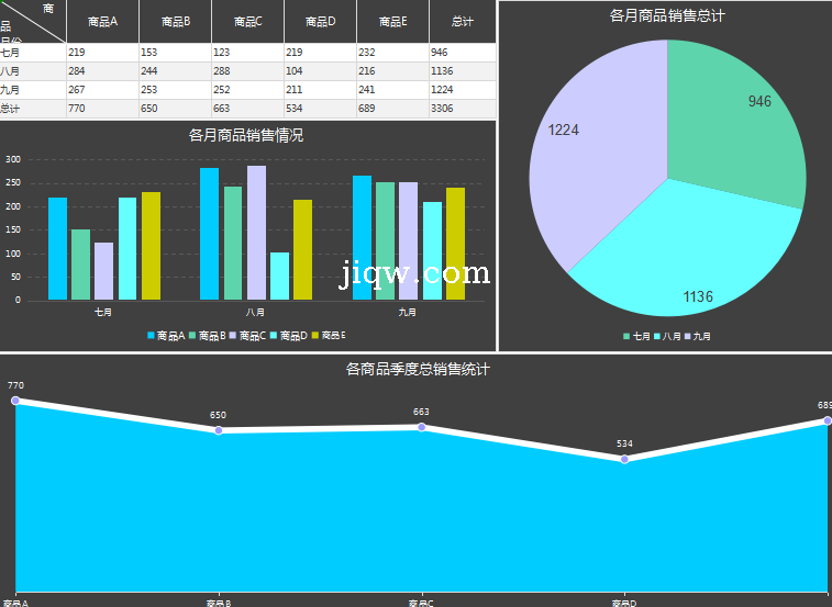 极全网】季度商品销量情况-表格
