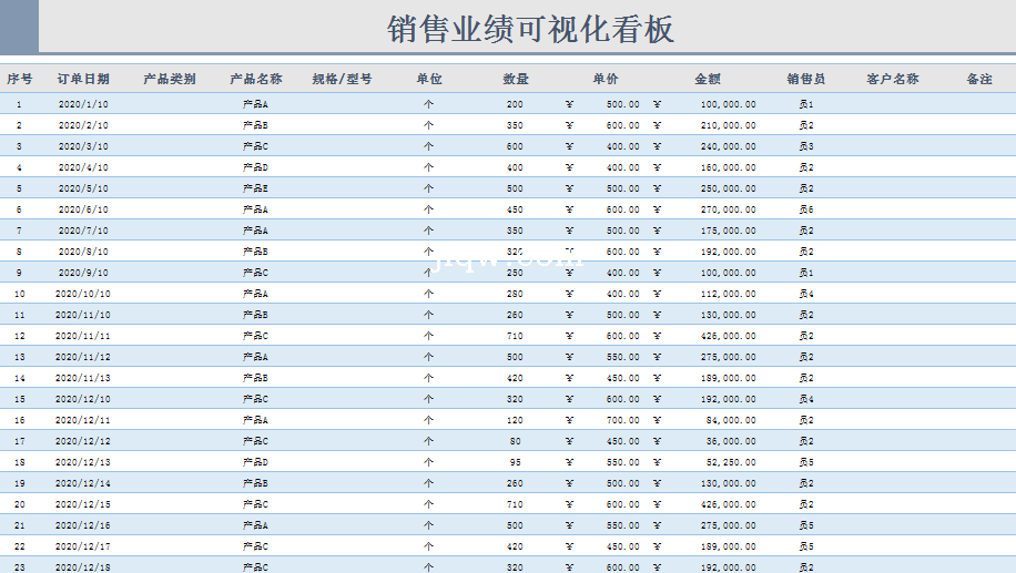 极全网】员工销售业绩可视化看板1-表格