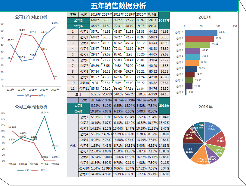 极全网】五年销售数据分析excel模板-表格