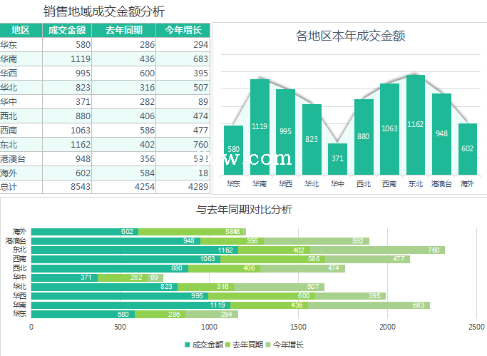 销量地域成交金额分析-表格-极全网