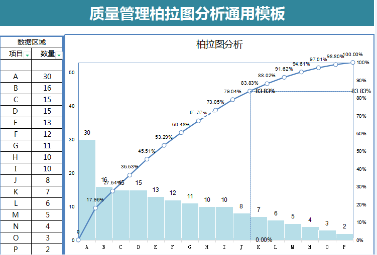 标题:质量管理柏拉图分析通用excel模板模板-图表