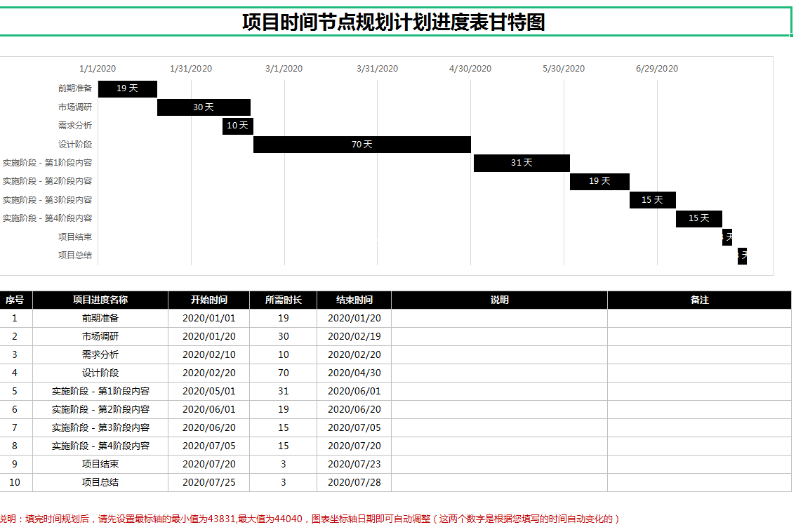 标题:项目时间节点规划计划进度表甘特图1-图表