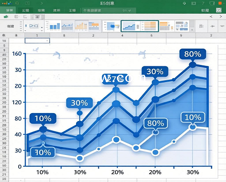 创意镂空百分比堆积折线图excel模板-图表-极全网