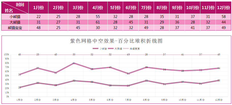 极全网】35创意镂空百分比堆积折线图excel模板-图表