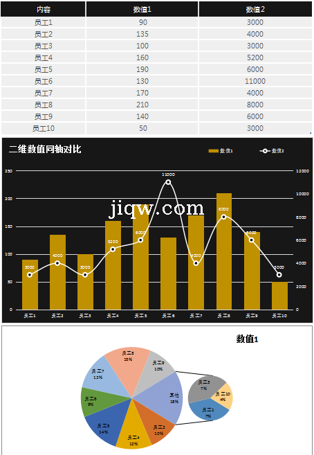 二维数值同轴对比Excel模板-图表-极全网