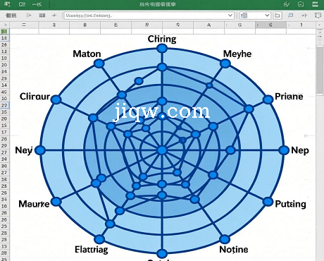 蓝色镂空雷达图excel模板-图表-极全网