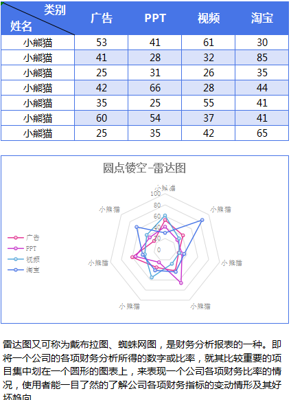 标题:蓝色镂空雷达图excel模板-图表