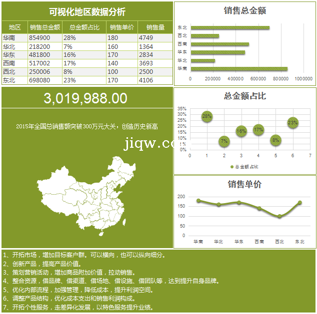 极全网】47绿色可视化地区数据分析excel模板-图表