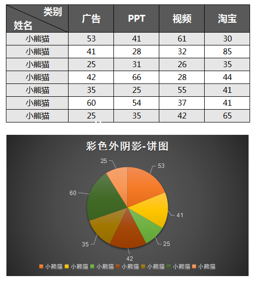 黑色简约外阴影饼图excel模板-图表