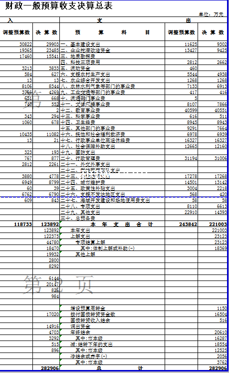 【极全网】财政一般预算收支决算总表