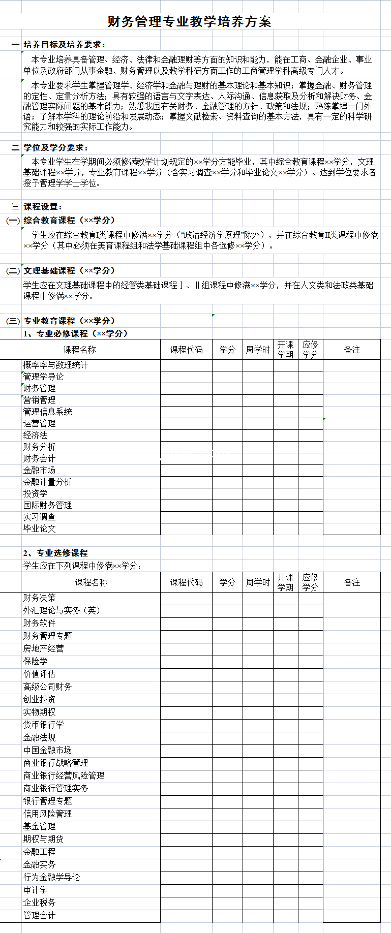 财务管理专业教学培养方案