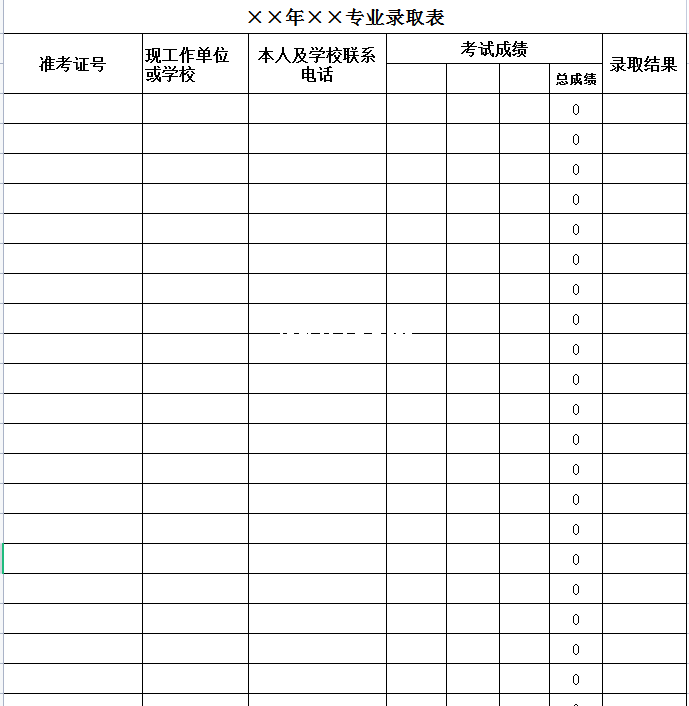 专业录取表-Excel表格