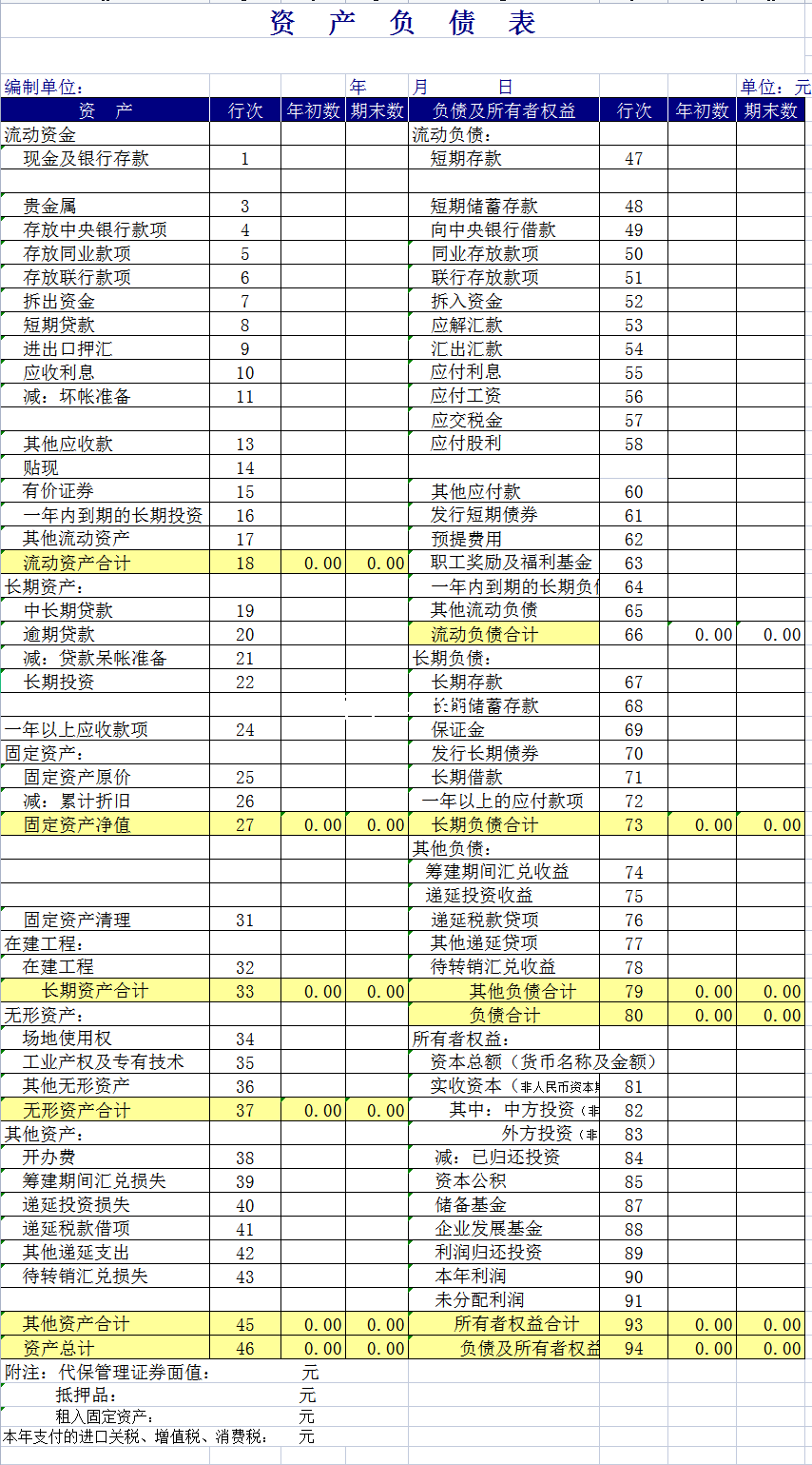 资产负债表9-Excel表格