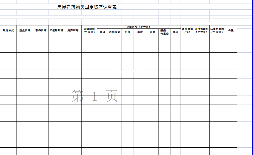 标题:房屋建筑物类固定资产调查表-Excel表格