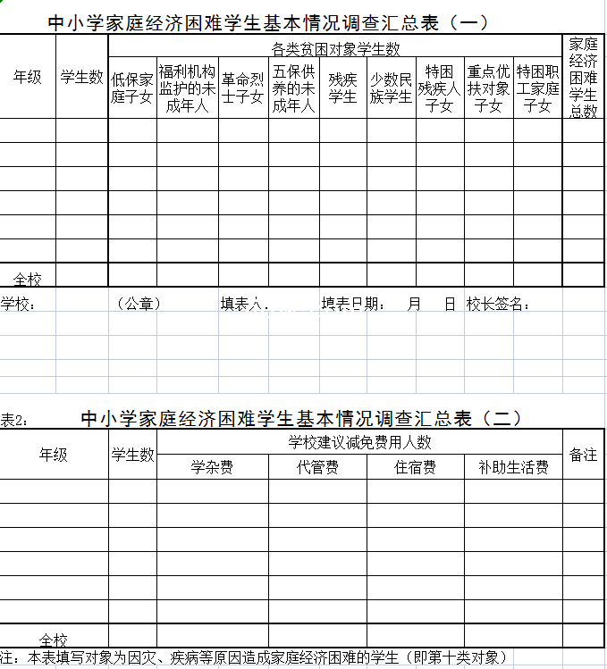 中小学家庭经济困难学生基本情况调查汇总表-Excel表格-极全网