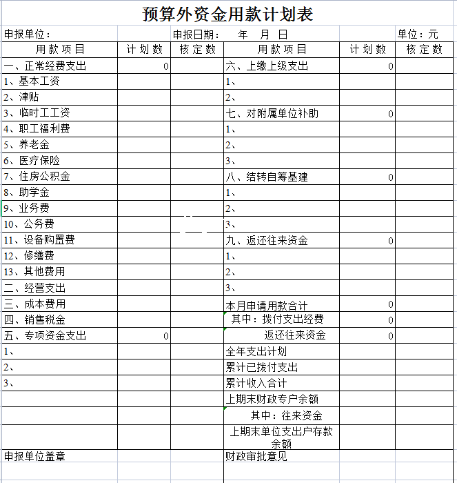 预算外资金用款计划表-Excel表格
