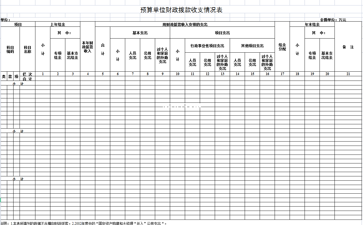 标题:预算单位财政拨款收支情况表-Excel表格