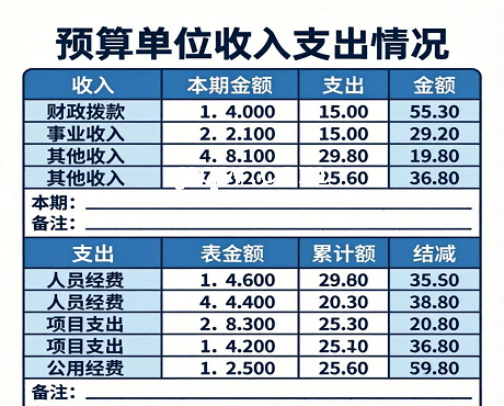 预算单位收入支出情况表-Excel表格