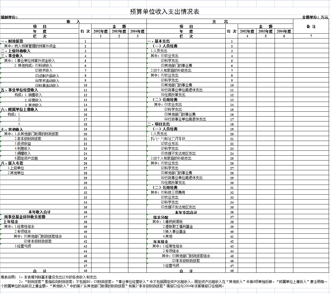 标题:预算单位收入支出情况表-Excel表格