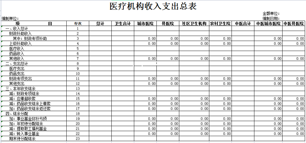 医疗机构收入支出总表-Excel表格