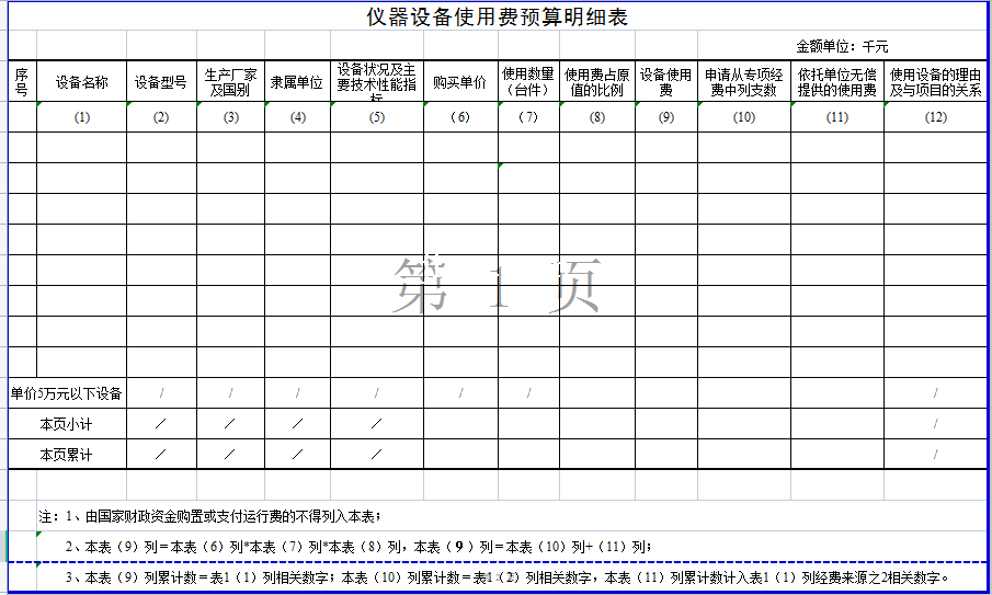 仪器设备使用费预算明细表-Excel表格