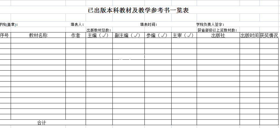 标题:已出版本科教材及教学参考书一览表-Excel表格
