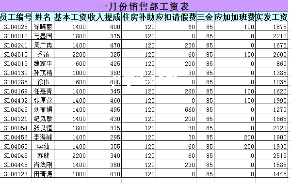 一月份销售部工资管理-Excel表格