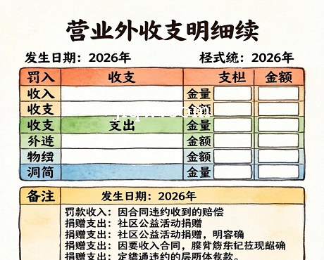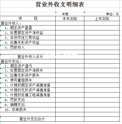 营业外收支明细表-Excel表格