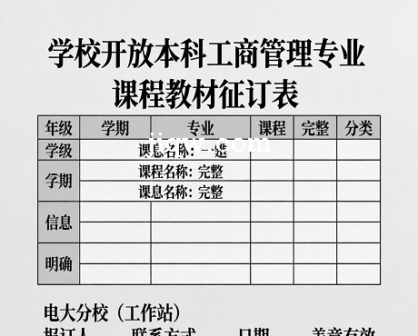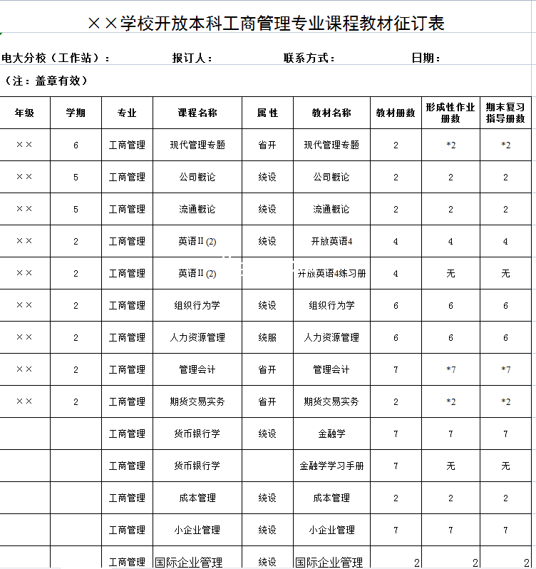 学校开放本科工商管理专业课程教材征订表-Excel表格