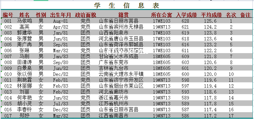【极全网】学生信息表-Excel表格