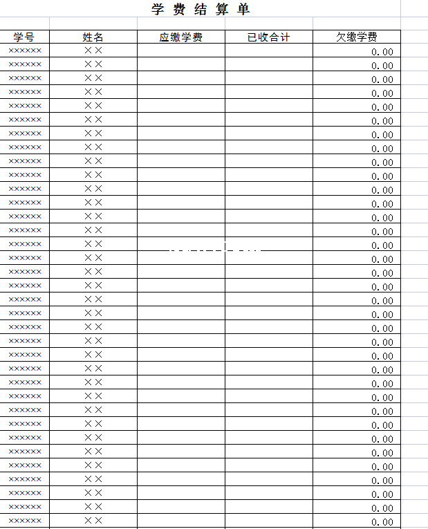 标题:学费结算单2-Excel表格