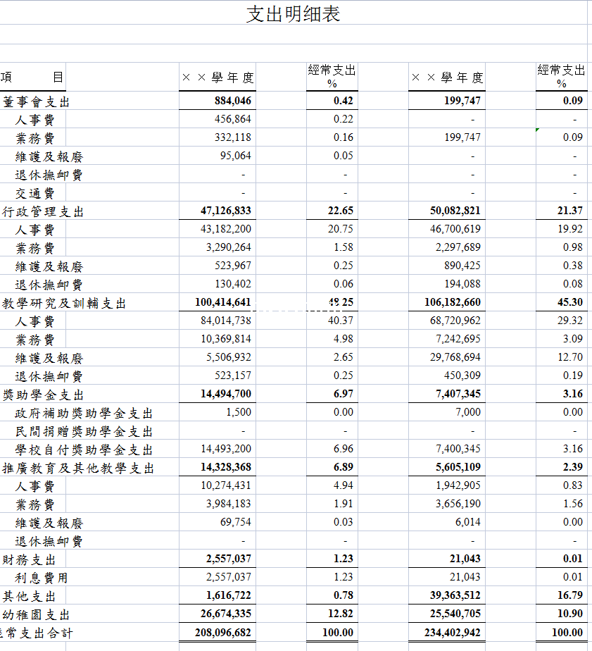学校支出明细表-Excel表格